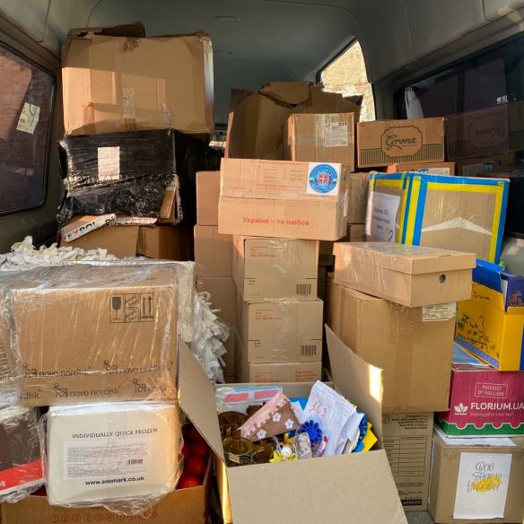 In unseren Kirchengemeinden in Kiew, Obukhov, Chernigov und Rokytne helfen wir durch durch die Verteilung von warmem Essen, Kleidung und Medikamenten. In Obuchow und Kiew zum Beispiel haben wir bereits Tausende von Abendessen und Brote verteilt, die in unserem Kloster gebacken wurden. Menschen in verschiedenen Orten haben Schuhe, Medikamente, Kleidung und erste Hilfe erhalten.