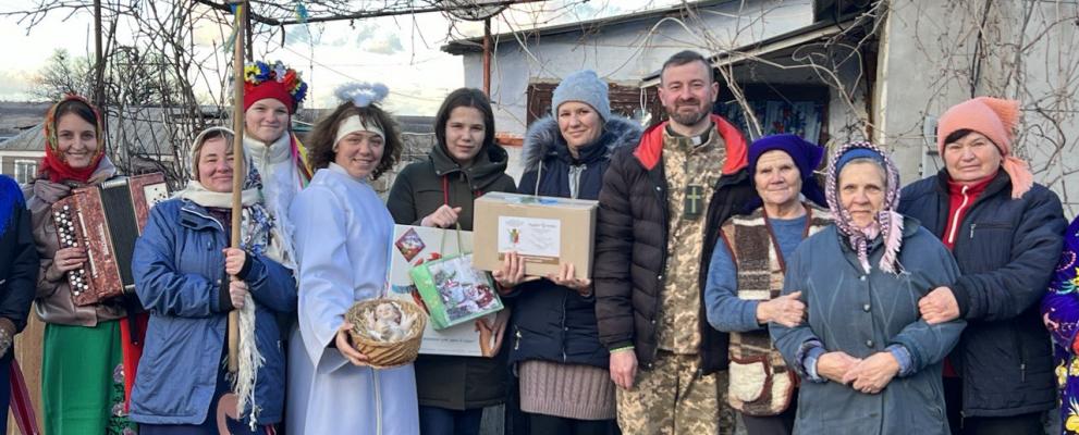 Den ganzen Januar und Februar sind wir weiter hinausgegangen, um die Soldaten, die Verlassenen und die Familien mit Kindern mit der frohen Botschaft von der Gegenwart des Gotteskindes unter uns zu trösten. Wir singen, wir segnen, wir lassen Kinder und Großmütter die Statue des Gotteskindes halten, wir verteilen Spenden mit praktischen Geschenken, besonders für ein Lächeln der Kinder. Wir bringen ihnen den Beweis, dass sie in diesem Krieg nicht allein sind. Vielen Dank an Sie!