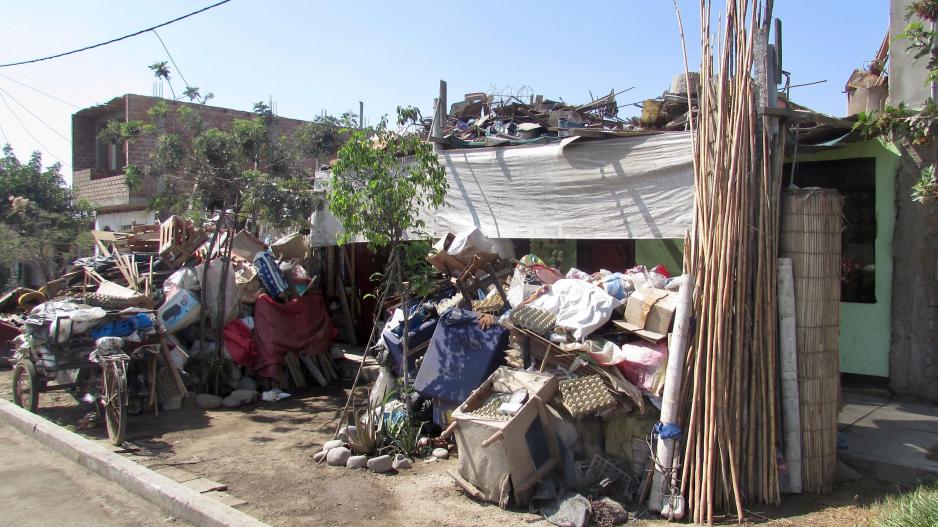 Sie öffneten die krumme Holztür und wir mussten geduckt eintreten. Als wir drin waren, mussten wir uns weiter ducken, weil das Dach aus Ästen und Futtersäcken bestand. Der Platz vor der Hütte war übersät mit Müll, den der Mann in den Straßen der Stadt sammelte. Als wir das hintere Ende seiner Wohnung erreichten, sah ich einen kleinen Käfig, in dem er einige Hühner hielt. Es roch ziemlich stark, aber mit der Zeit gewöhnt man sich wohl daran. Die Schlafzimmer waren winzig und kaputt. Bei Regen wurde alles durchnässt.