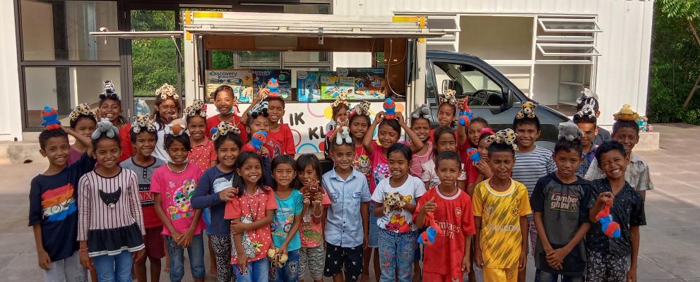 „Klik-Klik“ – nach dem Geräusch der Computermaus - lautet der Name eines umgebauten Suzuki-Pickups, der nach Pandemie und Regenzeit die Schule ins Dorf bringen soll. Im Westen der indonesischen Insel Sumba gibt es zwar Dorfschulen; aber keinen Lesestoff. Der „Klik-Klik“ bringt Bücher, Anschauungs-, Lern- und Übungsmaterial.